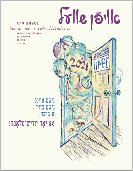 This issue celebrates our 80th anniversary of Yiddish artisanship on the pages of Afn Shvel! Read about the very first steps, about the accomplishments surrounding Yiddish during historically overloaded and tense periods all the way into the 21st century. Read a comprehensive article about the beloved editor Sheva Zucker, as well as several investigative articles about other earlier activists for Yiddish, such as the Yiddishist Shloyme Birnboym from Hamburg or the YIVO staff in the Vilna Ghetto.